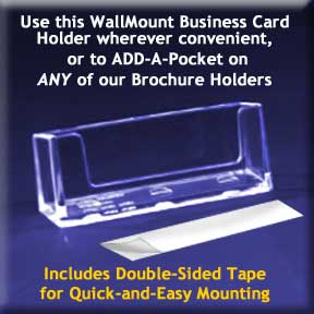 This sparkling clear molded Business Card Holder comes complete with double sided tape, and easily attaches to any clean wall or cabinet surface, or attach it to any of our WallMount or CounterTop literature holders - and because you attach it yourself, it can be placed so as not to interfere with any vital elements of your literature design.