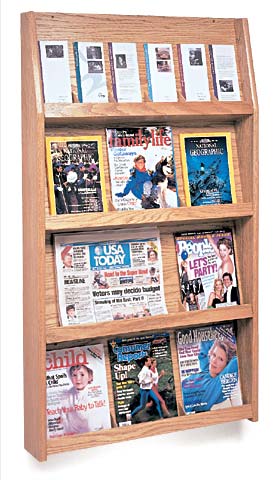 A beautiful way to organize almost any size literature. The four 11" high x 27" wide open shelves allow you to display books, magazines, pamphlets etc., all on the same display. Use the included dividers - as needed - to change pocket size. Slant back design keeps literature upright and accessible.