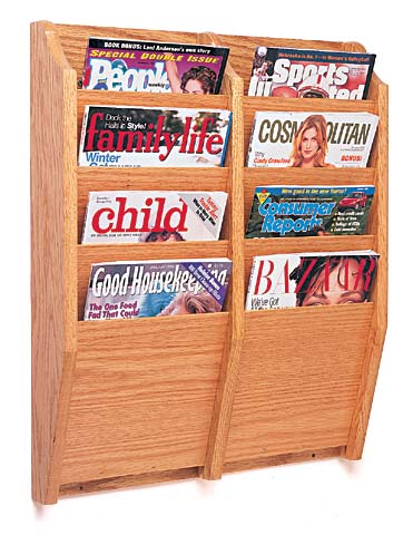 Unique Overlapping design displays and organizes magazines and literature - keeping them tidy and visible - in the least amount of space. Magazine pockets are 9" wide by 3/4" deep. Constructed with solid oak sides, and genuine oak veneer dividers and backs. This construction provides a more durable and solid product than those made of vinyl-wrapped particle board. Additionally, all components are prefinished before assembly to ensure an even finish in all nooks and crannies, and are sealed with a multi-coat state of the art finish ensuring a better protected product.