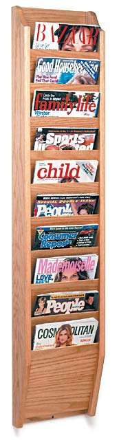 Unique Overlapping design displays and organizes magazines and literature - keeping them tidy and visible - in the least amount of space. Magazine pockets are 9" wide by 3/4" deep. Constructed with solid oak sides, and genuine oak veneer dividers and backs. This construction provides a more durable and solid product than those made of vinyl-wrapped particle board. Additionally, all components are prefinished before assembly to ensure an even finish in all nooks and crannies, and are sealed with a multi-coat state of the art finish ensuring a better protected product.