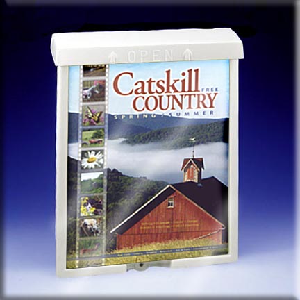 Catalog literature is accessed from the top through the hinged lid that readily closes to keep your literature dry and protected from the elements.