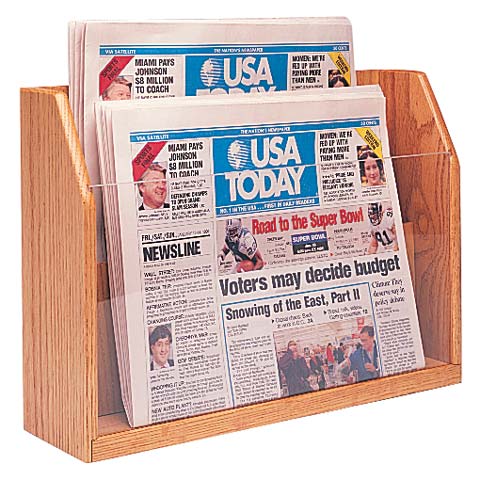 Oak & Acrylic Counter Newspaper Rack - 2 pkts.